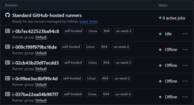 However, managing the self-hosted architecture can become challenging for operations teams during scaling-in events. When Auto Scaling Groups terminate unused Amazon EC2 instances to control costs and maintain agility, the runner services remain registered in GitHub as offline or orphaned runners.