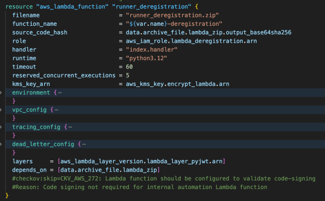 You will notice that the Lambda function uses layers here. That is because the function requires external Python dependencies like PyJWT and cryptography libraries for GitHub App authentication and JWT token generation. Lambda layers provide a way to package and share these dependencies separately from the function code, reducing deployment package size and enabling reuse across multiple functions. This approach also significantly reduces cold start times since the dependencies are pre-loaded in the layer. For a detailed guide on creating Lambda layers with Docker and Terraform, refer to this comprehensive note: Create AWS Lambda Layer using Docker, Terraform, and GitHub Actions.