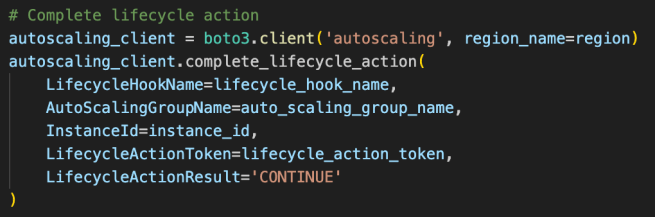 4. Configure lifecycle completion to notify the Auto Scaling Group when Lambda finishes