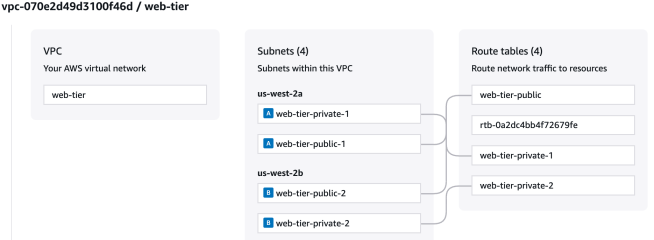 For this example, I imported a VPC, two subnets, and their associated route tables. I listed these resource IDs through the AWS Console and AWS CLI as I needed them for the import blocks in Step 6.