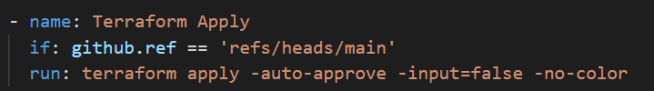 This conditional deployment ensures that feature branch changes are validated without being applied to your AWS infrastructure.