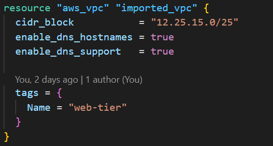 Ensure the resource names (e.g., aws_vpc.imported_vpc) are descriptive, as you’ll reference them in the import blocks in the next step.