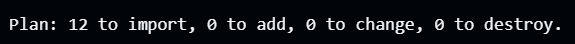 It is preferable to have all resources under import and nothing under add, change, and destroy, since this implies that the resources will be imported without any change in property. Iterate through this step by updating the Terraform configuration with the state of the resource, such that you do not see any resources under add, change, and destroy.